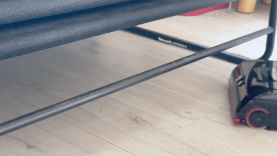 这一系统的核心优势,在于机身躺平后仅9.85厘米的纤薄尺寸。相比常规洗地机大幅缩减,能轻松探入绝大多数家具底部,从根源解决传统机型低矮区域进不去的清洁难题。