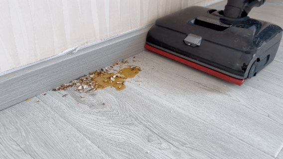 随后,我们进一步测试边角干湿混合垃圾的清洁力,特意在墙角模拟了泡茶时打翻茶叶包、茶水,再混入瓜子碎屑的极端干湿混合场景。
