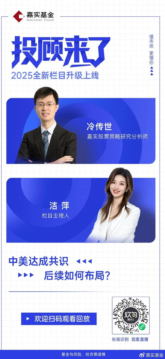 在近期的市场动态中,中美达成共识这一重大事件为全球投资市场带来了新的变量。冷传世作为嘉实股票策略研究分析师,在直播中对中美达成共识后的投资布局进行了深入剖析,涵盖A股、港股、美股、医药、军工、红利行业以及黄金等多领域,为投资者提供了参考与指引。