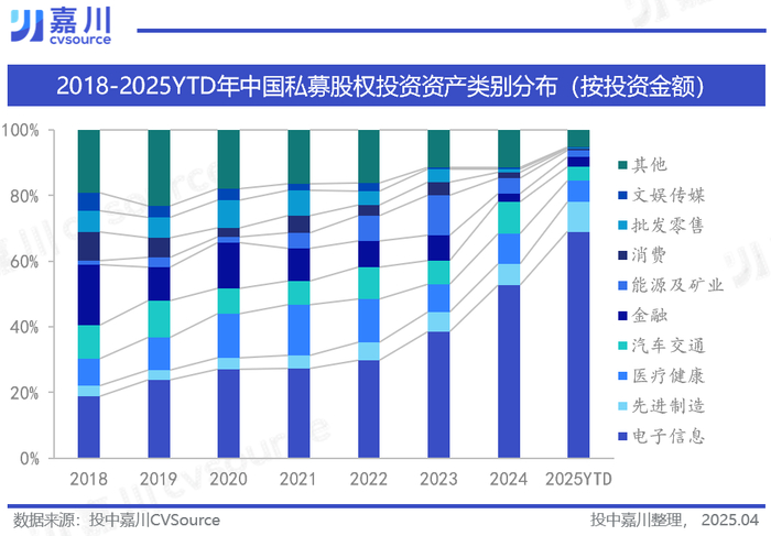 基于此,投中嘉川分析认为,中国虽与美国在关税问题上存在摩擦,但据海关总署数据显示,中国对美出口的主要产品集中在机械器具及电气设备、塑料制品、纺织品、家具玩具、贱金属及其制品等领域,2024年出口金额合计占比74.1%,这与私募股权近年重点布局的高端制造、半导体、AI、新能源等硬科技赛道存在结构性差异。叠加国内对内需市场大力提振与核心科技自主可控的稳步推进,此外,被投企业亦可通过产业链重构或绕道实现一定风险缓释。因此,关税对中国私募股权投资行业短时间内不会产生重大直接冲击。