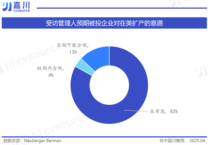 此外,绝大多数被投企业仍无计划在美国扩产或转向美国本土供应商,仅17%考虑布局,短期行动者不足4%。实际上,低预期与高成本双重约束下,供应链重构并非普适选择,企业更倾向通过价格调整与运营优化等柔性手段应对关税风险。