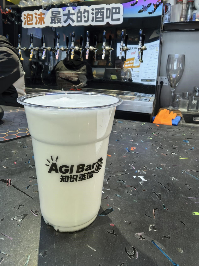 酒吧名叫AGI Bar,中文名是知识蒸馏,就藏在中关村创业大街的中段。那条街曾见证互联网在中国的第一次狂奔:车库咖啡、3W、web3 快闪空间……在十几年前,它们是创业者的庇护所,是投资人的雷达站,是无数年轻人梦想的出发点。