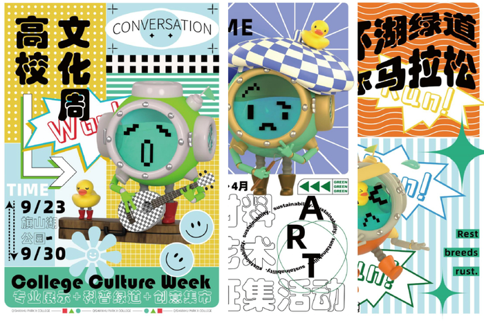 共建——以人为中心,号召大家共同投入到旗山湖公园的建设中,主打高校氛围,希望增强高校群体对于园区的认同感与归属感,提升与当地居民的互动性,对外明确年轻活力富有创造的园区形象,提升园区知名度。