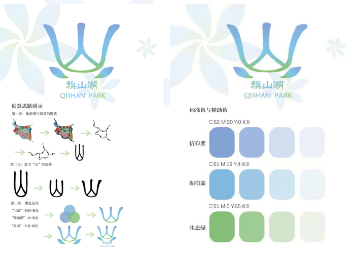 隶书的山正好和旗山湖的规划图对应;Logo整体设计思路遵循了人与自然和谐相处的理念。