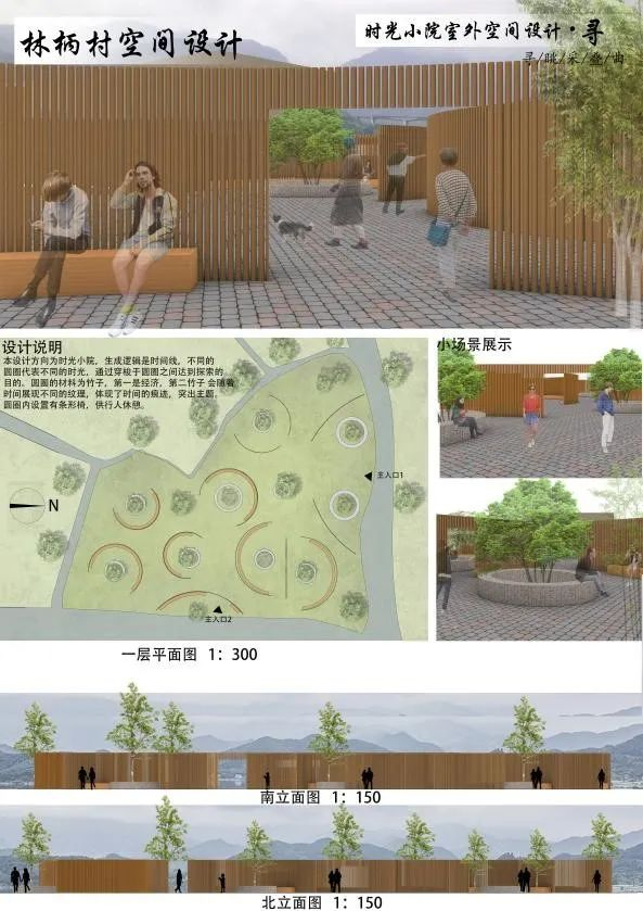 作品以“时光小院”为设计方向,将时间作为设计的逻辑线,以不同圆圈代表不同的时光,通过穿梭于圆圈之间达到探索的目的。