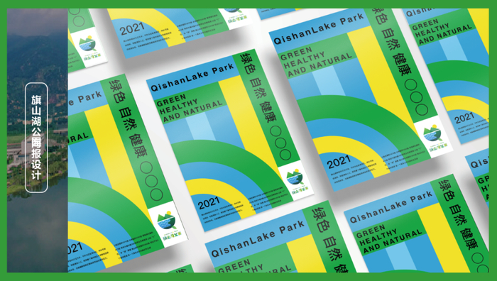 本次旗山湖公园视觉设计,主要提取旗山湖公园山川与水面的生态特征,加以福州大学城文化艺术中心的人文景观特色,融合自然与人文,从立足生态、面向未来的角度出发,依据园区地貌特征,大学城、三创园等规划方向,总结旗山湖公园的定位——集自然景观、生态人文创业于一体,具有休闲、运动、创业等业园区综合功能,风格上体现山水风光、青春梦想、无限未来等视觉特征,在表达出其自身特色的前提下,从设计的角度艺术化地表达旗山湖公园向人们向社会传达出的精神内涵。