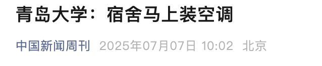 7月6日下午,有记者联系青岛大学总值班室,工作人员告诉记者,“很多办公室都装了的(空调),我们新楼都装着呢。宿舍那边,我们学校已经都招完标了,马上就装了。”