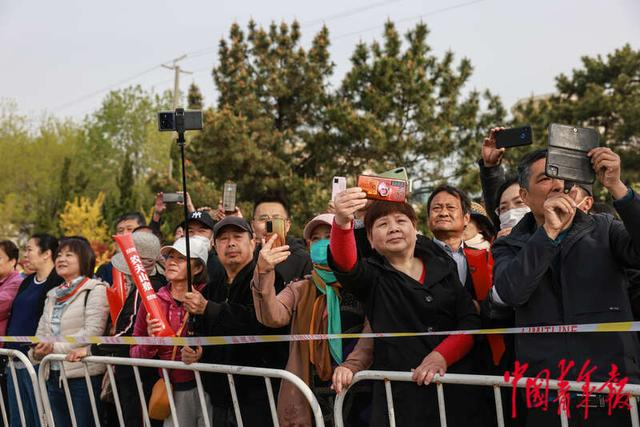 4月30日,山东荣成,2023荣成滨海马拉松赛上,热情的观众纷纷用手机记录这场久违的赛事。中青报·中青网记者 曲俊燕/摄