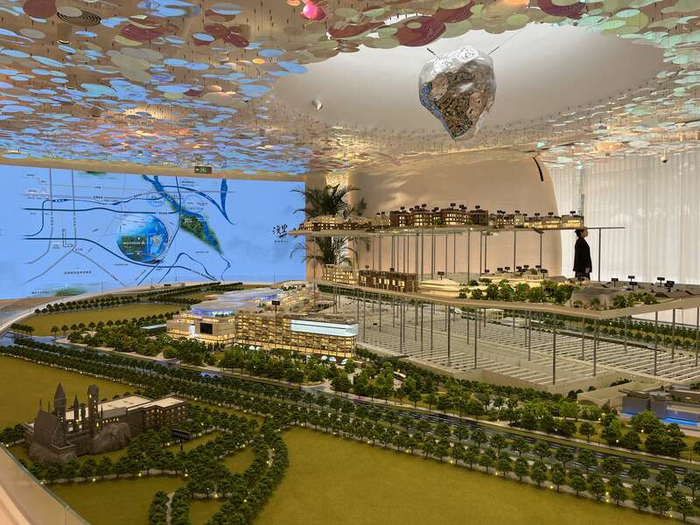 10月17日,“湾里”项目建设沙盘。中青报·中青网记者 张艺/摄北京环汇置业有限公司总经理助理周路苇介绍,“湾里”项目将引入王府井奥莱、汀云小镇、诺岚酒店三大业态。汀云小镇里有儿童玩的国内第一座小王子主题乐园,有青少年喜欢的国家地理探索中心,有年轻人爱去的Livehouse(音乐展演空间),有冬季吸引游客的汤泉中心,有以魔毯广场为核心的特色餐饮娱乐不夜城,有以600间不同档次客房组成的各种主题的酒店群落,还有可以举办各类演艺活动的室外公园。