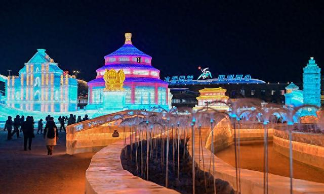 哈尔滨冰雪大世界夜景。视觉中国供图本届亚冬会将有来自亚洲34个国家和地区的超过1200名运动员参加,参赛的代表团数量和运动员数量均创历届亚冬会之最。