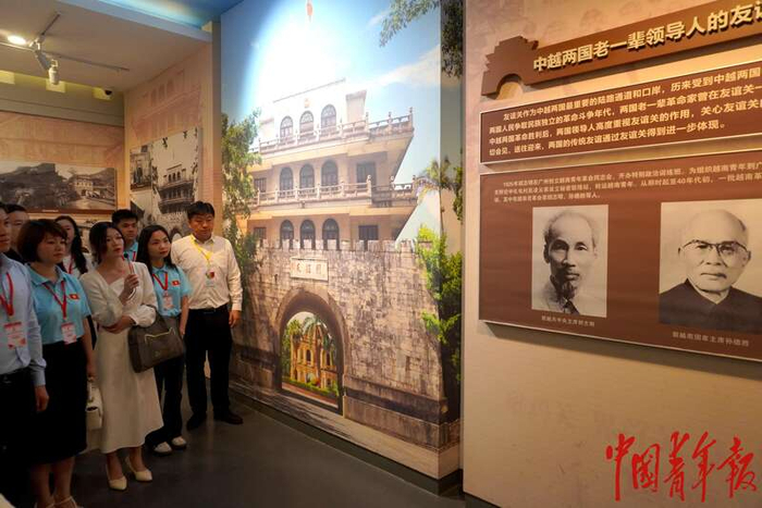 5月21日,广西凭祥,中越青年代表参观友谊关关楼展览厅。作为祖国南大门,友谊关是中越两国友谊和合作的象征。在中越两国人民争取民族独立的革命斗争年代,两国老一辈革命家曾在友谊关一带开展革命活动。周恩来总理曾两次在这里会晤越南人民的领袖胡志明主席。马子倩/摄