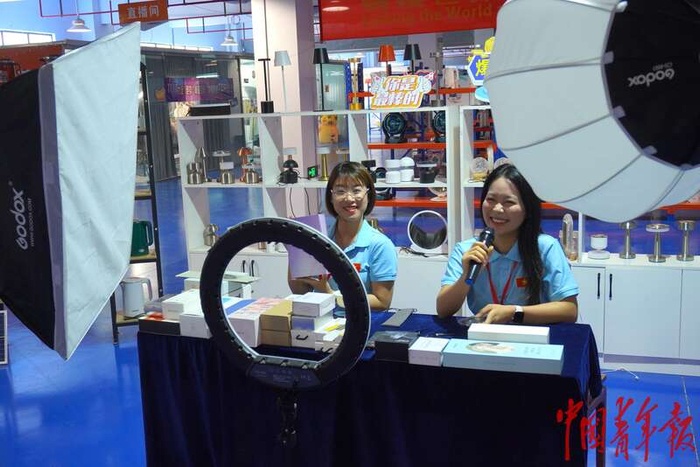 5月21日,广西凭祥市跨境电商直播基地,两名越南青年代表模拟扮演电商主播。马子倩/摄