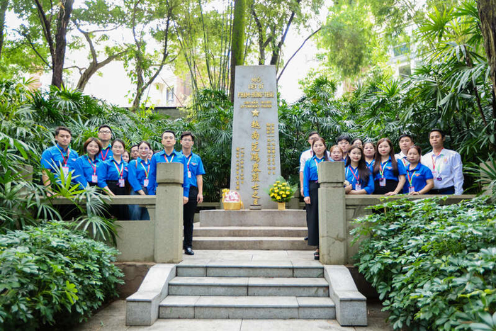 5月20日,广东广州,越南青年考察中国社会主义青年团第一次全国代表大会纪念馆。共青团广东省委供图当天,中越青年一同参观越南青年革命同志会旧址和“革命之路——胡志明同志在中国”专题展览,回顾20世纪中越革命先驱并肩战斗、探寻救亡图存道路的峥嵘岁月,同时前往广州黄花岗七十二烈士墓园拜谒了越南范鸿泰烈士墓。
