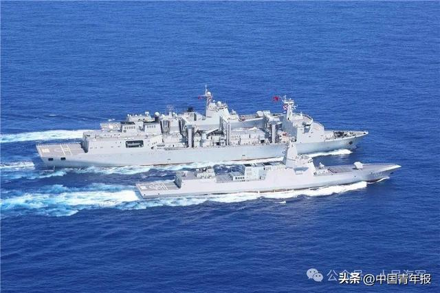 ▲6月上旬,海军航母编队在西太平洋海域开展训练,图为编队属舰进行航行补给。 景钢 摄