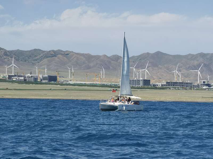 游客在赛里木湖乘坐帆船 朱洪园/摄“我们是在网上刷到了赛里木湖的视频,大家对这里的美景非常向往。”他说,他们从天津乘飞机先到兰州,又乘动车到乌鲁木齐,然后自驾来到赛里木湖。