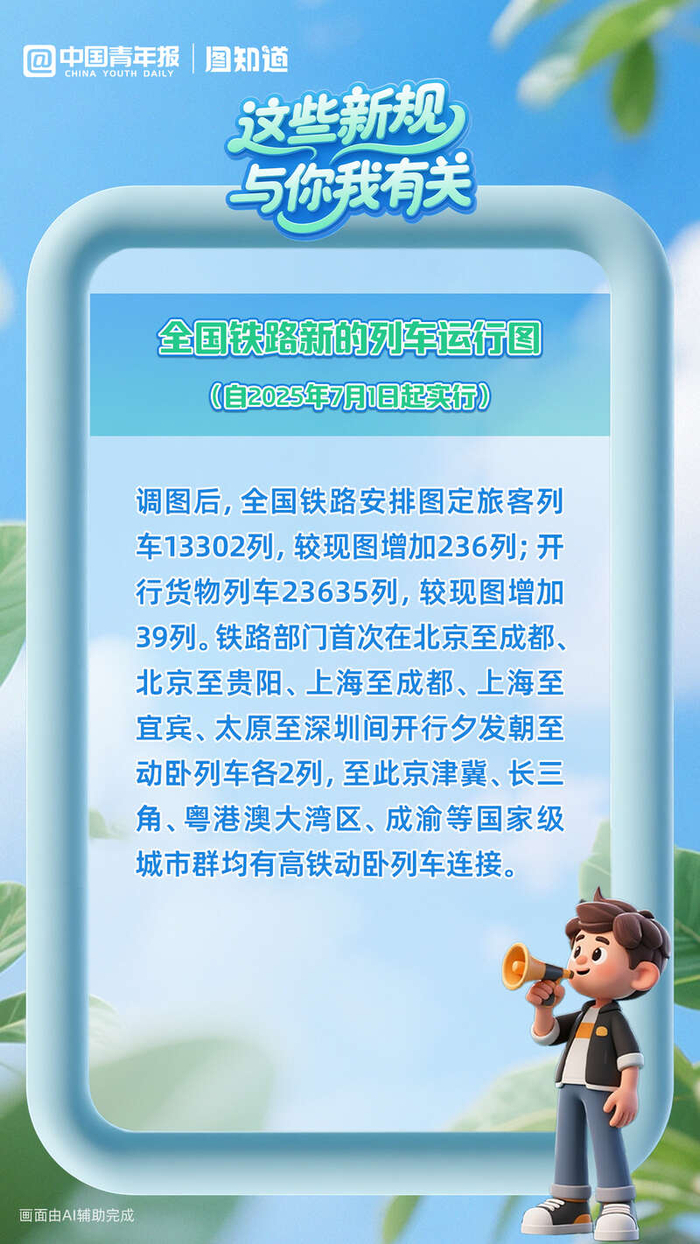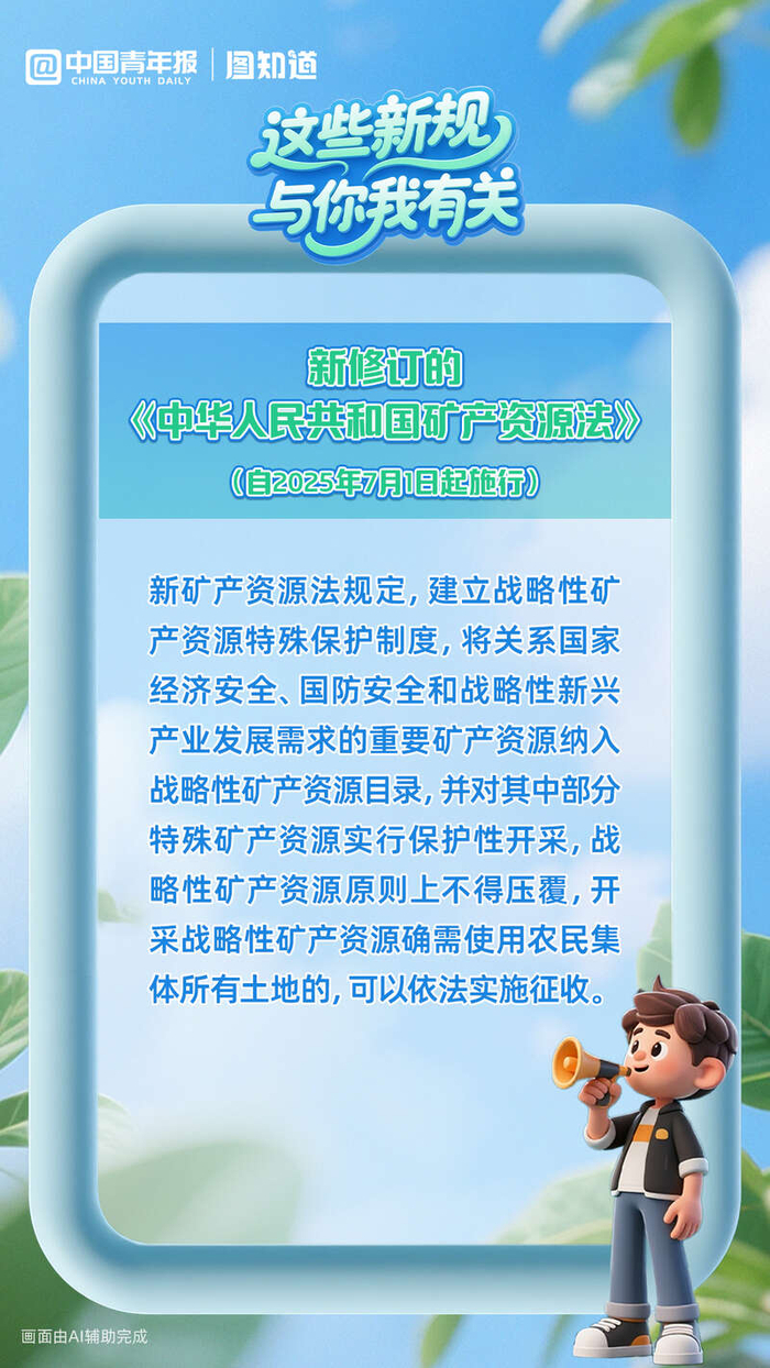 建立战略性矿产资源特殊保护制度;全国铁路安排图定旅客列车达13302列;细化个体工商户住所和经营场所登记规则……2025年7月,这些新规与你我有关,多图速览。