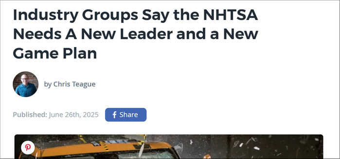 行业组织表示,NHTSA 的不作为正在扼杀自动驾驶行业创新,而美国公路安全保险协会则表示,该机构“需要更强有力的领导力”。