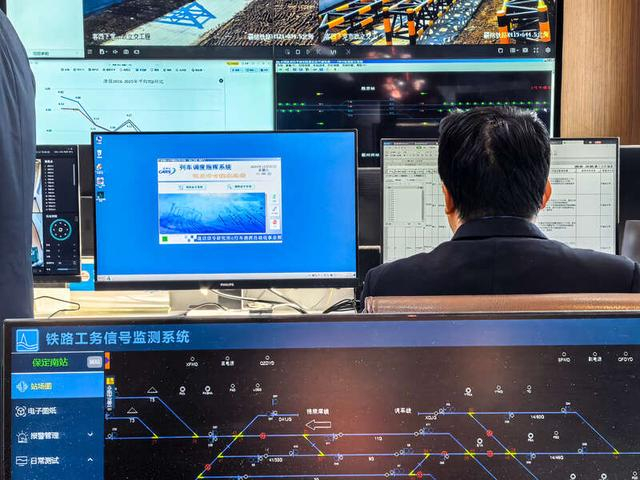 12月27日,保定工务段调度指挥大厅,如今的运维保障更加标准化、智能化,守护每一趟列车的安全畅行。中青报·中青网记者 陈思阳/摄