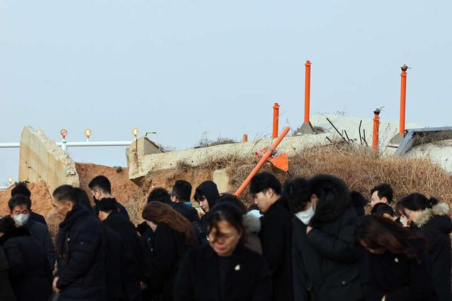 2025年12月29日,韩国务安国际机场,12·29济州航空客机坠毁事故一周年之际,遇难者家属在事故现场参加悼念活动。视觉中国供图