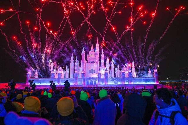 1月6日,吉林长春,人们在观看第十二届全国大众冰雪季启动仪式暨长春市首届冰雪运动嘉年华的开幕烟花。视觉中国供图