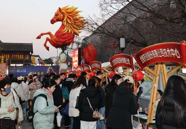 1月9日,江苏南京,晚间的夫子庙老门东景区内城墙边,众多求职者在新年首场“人才夜市”上咨询应聘。视觉中国供图