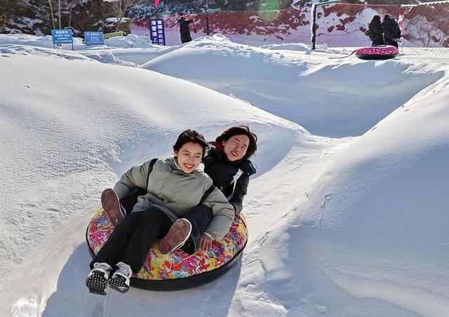 1月8日,游客在河北省秦皇岛市海港区石门寨镇的老君顶景区体验雪圈。视觉中国供图