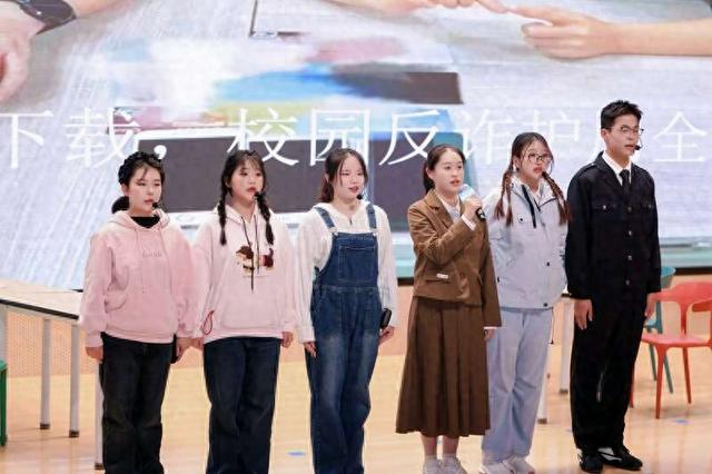 活动现场。主办单位供图安徽省通信管理局党组成员、副局长余建军,共青团安徽省委员会副书记周宇,安徽省教育厅二级巡视员周晓芹,安徽医科大学党委常委、副校长邱志海,安徽省公安厅刑侦总队副总队长陈青亚,安徽省学生联合会驻会执行主席洪坤等领导和嘉宾出席活动。现场,青春反诈市集和作品展区吸引学生们驻足打卡。安徽医科大学的学生带来自编自导自演的反诈主题情景剧和快板演出。