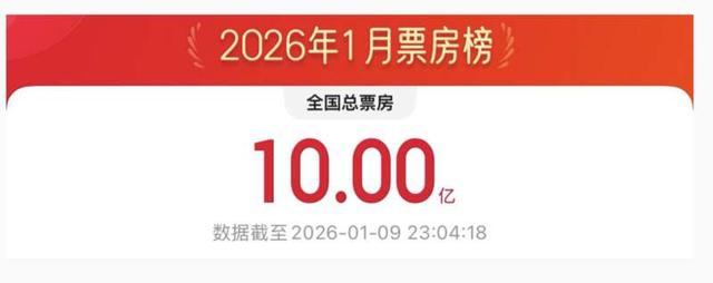 据网络平台数据,截至1月9日23时04分,2026年1月电影总票房破10亿。