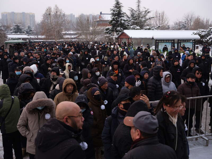 2026年1月18日上午,聂卫平遗体送别仪式在北京市八宝山殡仪馆东礼堂举行。早上7点多,天空中飘着雪,送别的人群在礼堂外排起长队。中青报·中青网记者 李隽辉/摄
