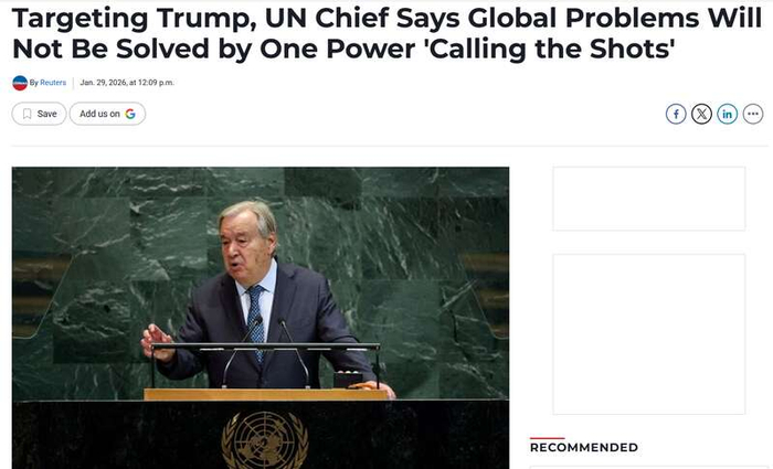 英国路透社报道截图中国青年报客户端讯(中青报·中青网记者 王梓)据英国路透社报道,今年是联合国秘书长古特雷斯任期的最后一年,1月29日,古特雷斯在联合国总部召开新闻发布会,概述2026年的工作重点。他警告称,国际法和国际合作遭到侵蚀,“全球问题不能靠一个大国独断专行来解决”。他随后补充说,这句话指的是美国。