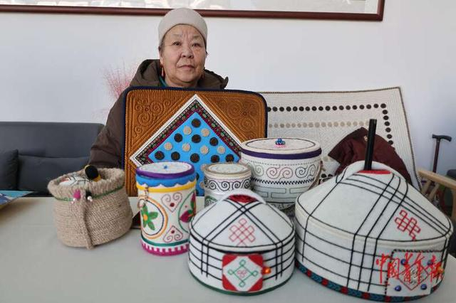 1月30日,苏尼特右旗非遗年货现场的蒙古族刺绣作品。中青报·中青网记者 石佳/摄