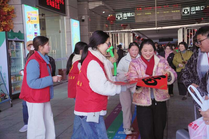 今年“暖冬行动”志愿服务以“暖心服务”为核心,在铁路开化站、开化客运站设置反诈宣传、公益义诊、行李搬运、送福进站、公益金融等6项便民举措,全方位护航返乡旅客出行;在高铁进站口精心设置打卡处,年味十足的布景吸引旅客驻足留影,志愿者为乘客拍照摄影。龙顶高速服务区以“志愿+宣传”为抓手,为途经旅客送上暖心姜茶,同步推介本地风土人情,助力更多旅客认识开化、了解开化。