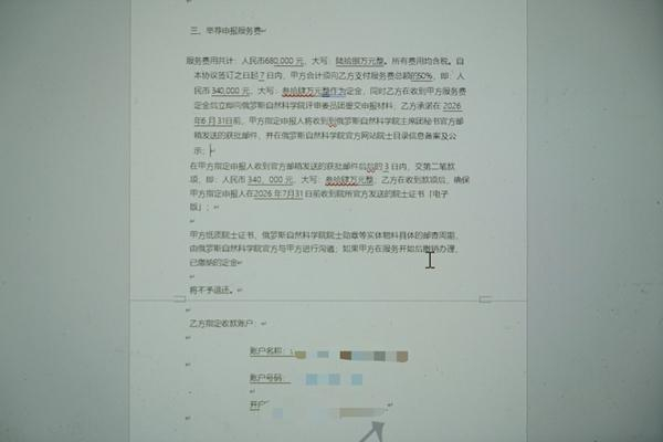 2026年1月,记者收到的一份俄罗斯自然科学院外籍院士申报服务协议显示:举荐申报服务费为68万元。记者翻拍