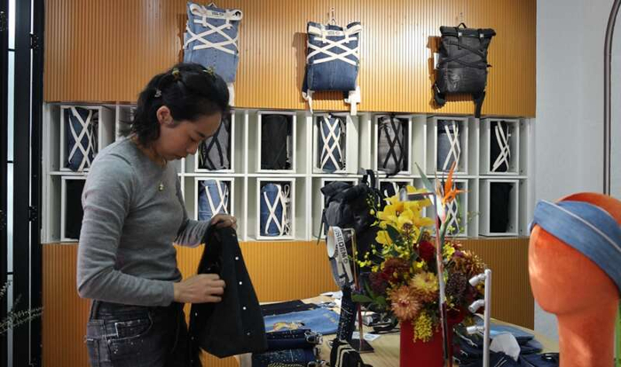 2月3日这天,轮到东华大学旭日工商管理学院管理科学与工程专业研究生一年级的赵闯看店。中午时分,他已经完成了基本布置,正在用英语向一名外国游客介绍当前这家名为USEDEM的牛仔环保品牌的特色。