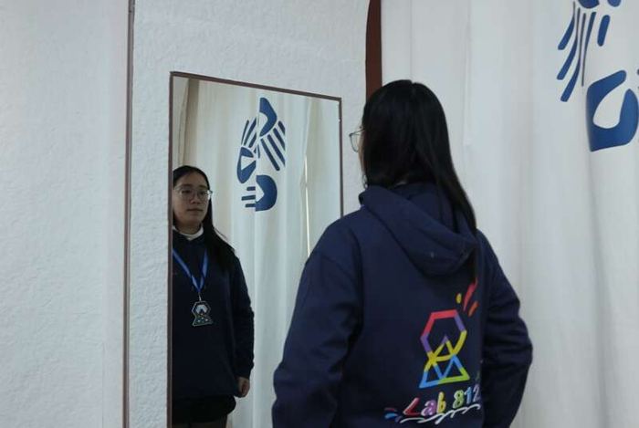 东华大学学生向记者展示团队自己设计的Lab812青春经济工作服。中青报·中青网记者 王烨捷 摄东华大学信息与智能科学学院人工智能专业大四学生林云翔本身是个内向的人,他通过学校团委报名参加了共青团静安区委员会青春经济专项工作组,成为运营组的一名骨干。“高效率、高频率与人沟通”成为他的日常。他有时要负责拍摄小店视频,帮助小店作宣传;有时要到各个街道、乡镇调研,了解各处的青春经济现状。最常做的事,是用人工智能技术生成海报、图片、文字等,来做好每一个入驻小店的推介工作。