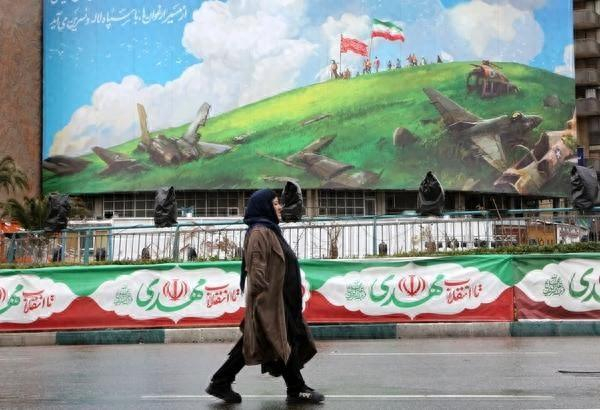 2月4日,伊朗德黑兰,瓦利亚斯广场一栋建筑上悬挂反美宣传画。视觉中国供图