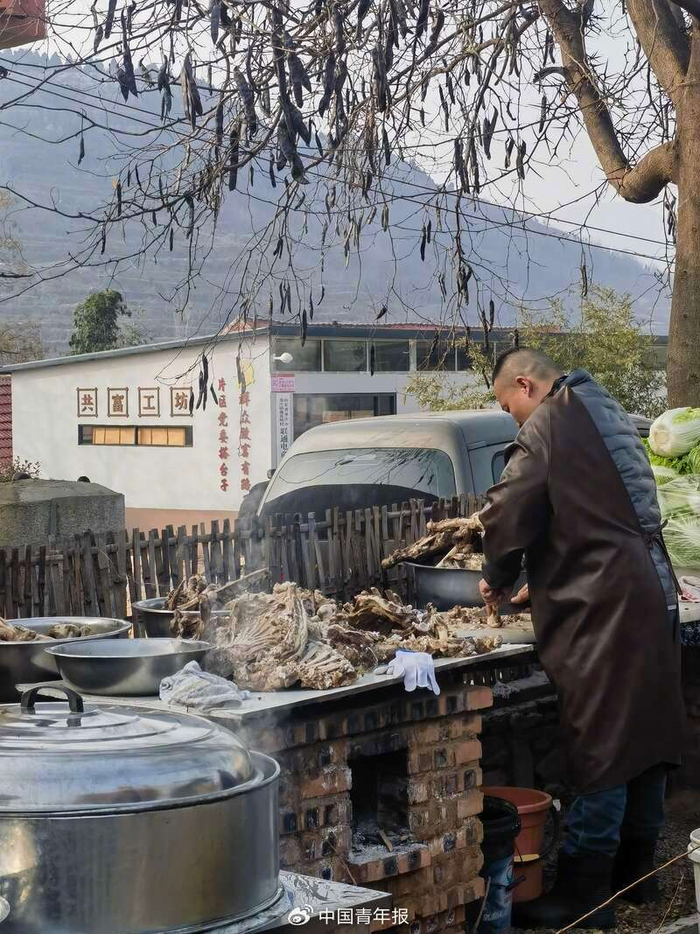 1月31日,藤花峪村迎来了热闹的“羊汤宴”。中青报·中青网记者 邢婷/摄