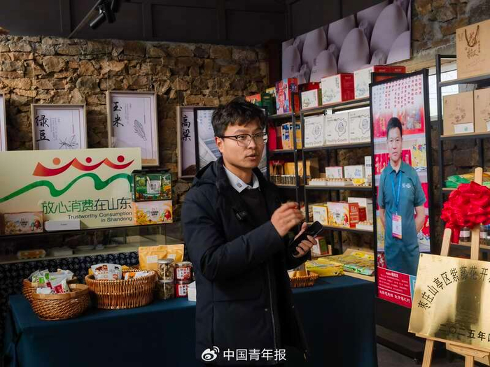 王浩在介绍直播助农的开展过程。中青报·中青网记者 邢婷/摄