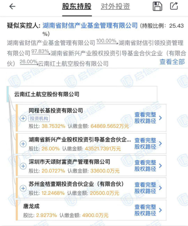 最终,湖南政府通过增资扩股的方式进入,成为红土航空的二股东,而同程通过两家公司合计持股红土航空51%,仍为红土航空的第一大股东。
