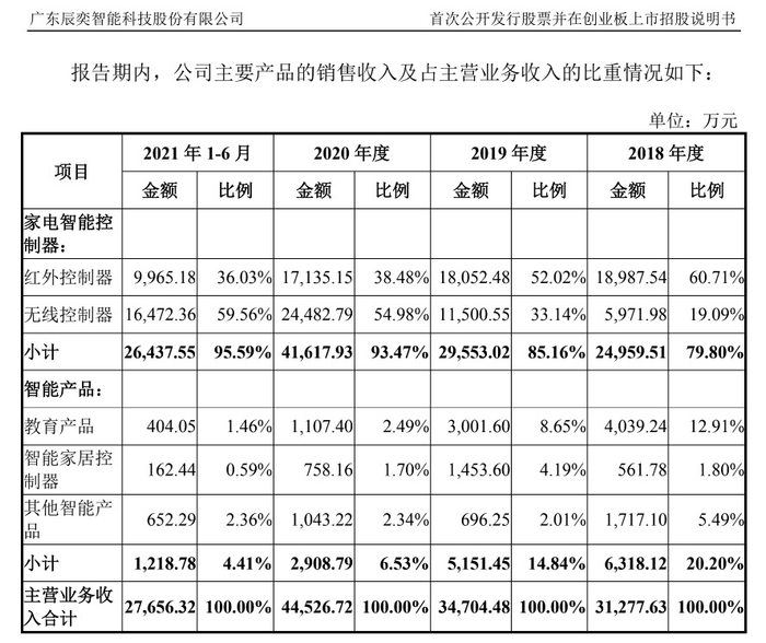 按照2020年辰奕智能在智能控制器产品的收入为4.16亿元计算,仅仅是上述数万亿元的一个零头;而竞争对手拓邦股份、和而泰智能控制器产品的营业收入,都远高于40亿元的水平,超过辰奕智能的10倍。