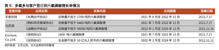 业内人士介绍,比如比亚迪、亿纬锂能和多氟多的长协是固定的价格,在六氟磷酸锂现货价格40多万元时,多氟多同两家企业签署了23万元的保供价,折扣接近50%;再比如宁德时代和一些公司签的是未来的需求量,为固定毛利率加成的模式。天际股份据悉两种长协模式兼具,对江苏国泰的长单是锁量、锁价、打预付款,对比亚迪则是锁量、不锁价、打预付款。