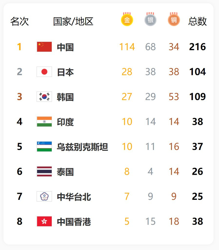 【奖牌总榜】