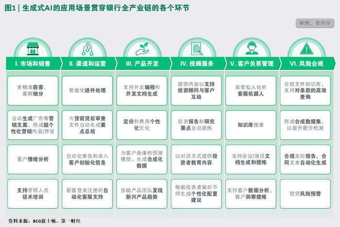 2023年以来,ChatGPT引爆各行各业对生成式AI(AIGC)的应用探索。在帮助金融机构提升客户服务响应能力、为用户提供个性化理财建议、增强市场洞察能力强化市场营销、增强风控能力等方面,生成式AI技术有很大的应用前景,被视为金融服务方式革新的一个关键因素。