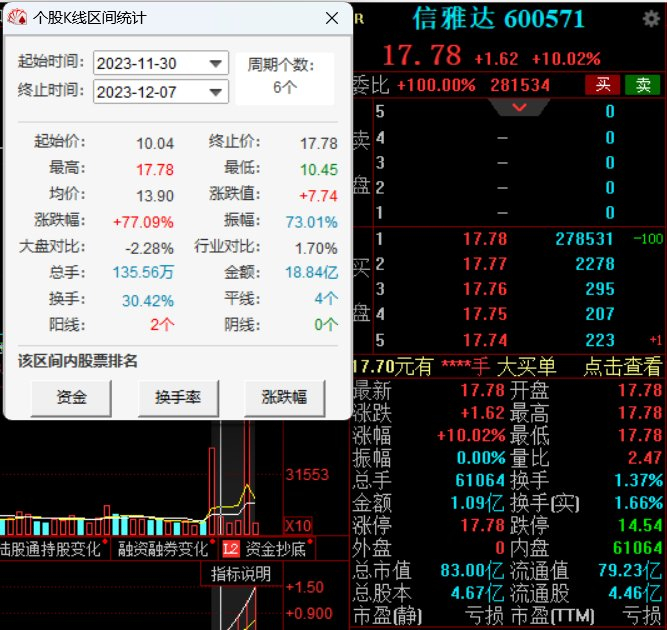 12月7日,信雅达一字涨停走出6连板,累计涨幅超77%。截至发稿,报17.78元,涨停封单近28万手。