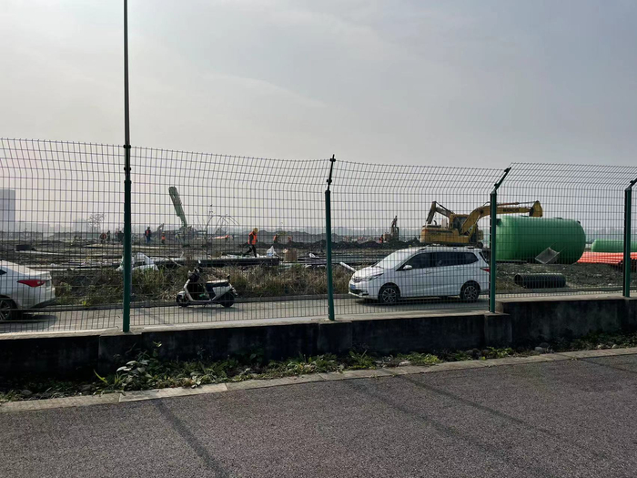 这里的施工可能是近日才开始的。有一批工人告诉记者,他们是6日才进场的。记者还看到,仍然还有吊臂车开进工地。而厂区外面的市政绿化带上,也有大量工人在种植花草和维修设施,他们说也是6日才接到任务。还有技术人员正在厂区围栏内对海关监管设备进行检修。