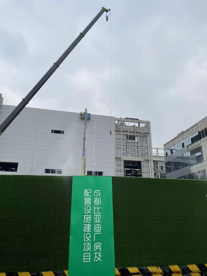 在成都高新综合保税区双流园区,在进入园区的第二个十字路口,已经树立起了“比亚迪产业园”的牌子,在工地围栏上张贴着“成都比亚迪厂房及配套设施建设项目”。有工作人员介绍,虽然主体建筑已经完成,但是还有内部建设以及安装机器设备,预计明年上半年招工。