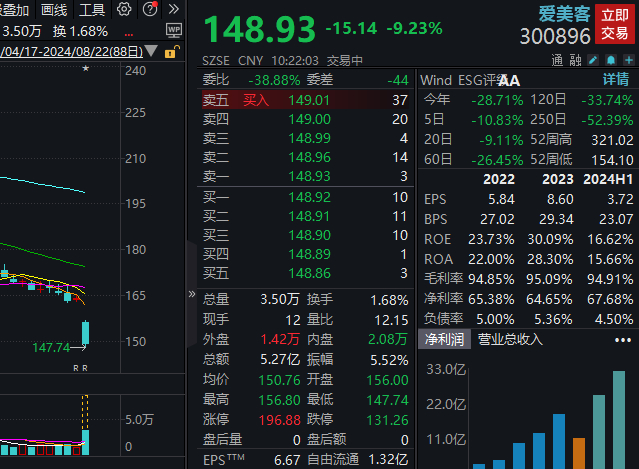 8月22日,早盘大消费板块表现低迷,医美概念领跌。截至发稿,爱美客跌近10%,股价创2020年10月以来新低。