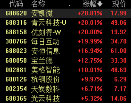 青云科技、优刻得、每日互动等竞价涨停,盛天网络、安恒信息高开。