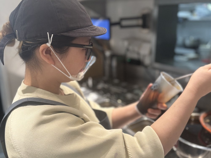 作为店经理,她的日常工作涵盖了门店运营的方方面面:从早上的物料检查、员工工作部署,到确保操作标准和食品安全,再到应对突发情况,她都要亲力亲为。她管理的16名员工中,也有比她年长的同事,但她凭借专业能力和亲和力赢得了大家的信任。