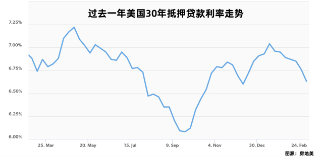 自美国总统特朗普上任以来,美国30年期房屋抵押贷款利率持续下行。据房地美(Freddie Mac)数据,截至2025年3月,该利率已降至6.63%,为近三个月最低水平,较1月中旬的7.04%下降了41个基点。